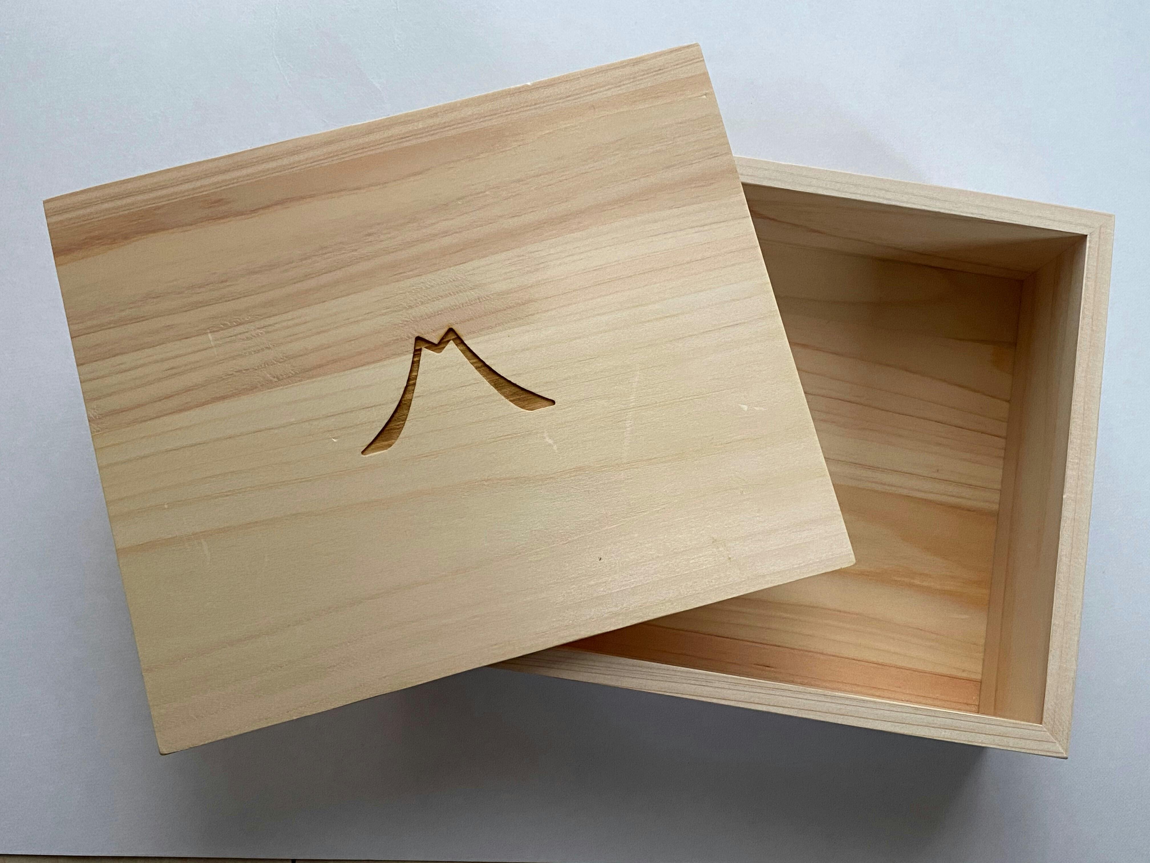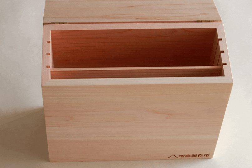 こちらも蓋の部分には増喜の頭文字であるMのロゴを入れており、蓋と本体はゴールドの蝶番でしっかりと繋いでいます。