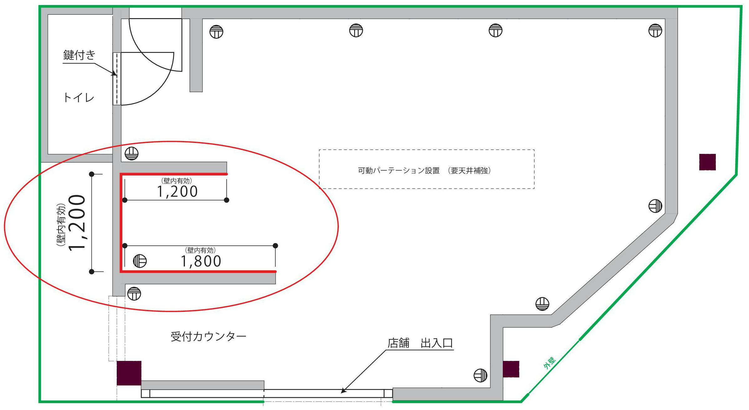 店舗入り口は、中央に作る予定です