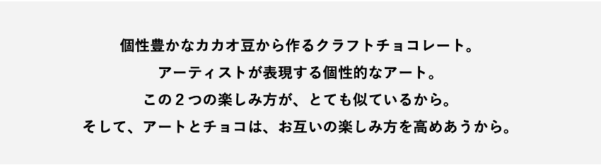 アートとチョコレートを組み合わせるに至ったのは、このコンセプトを提供できると考えたためです。