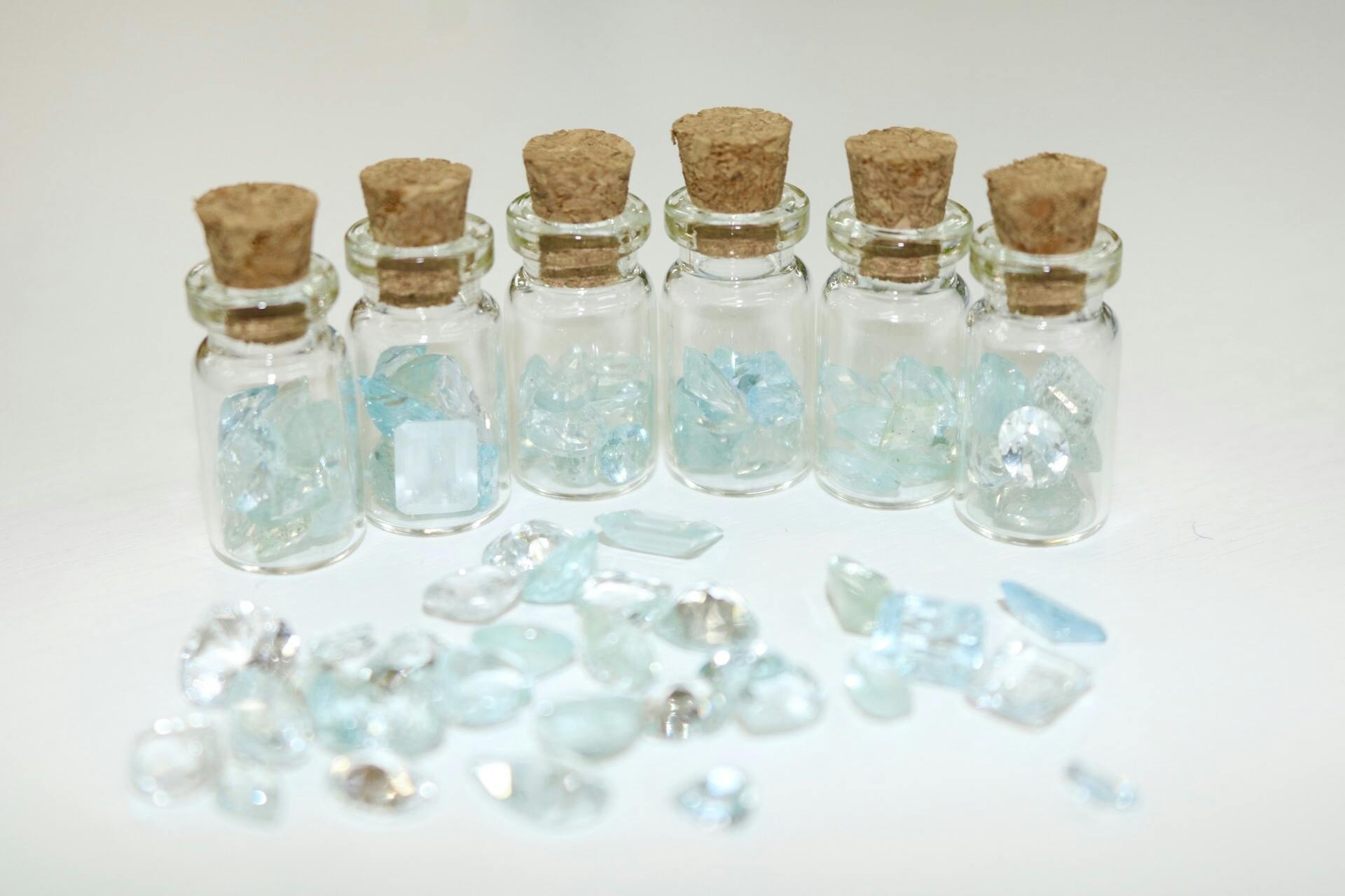 小瓶に9〜11個のアクアマリンの宝石瓶1個 送料税込み