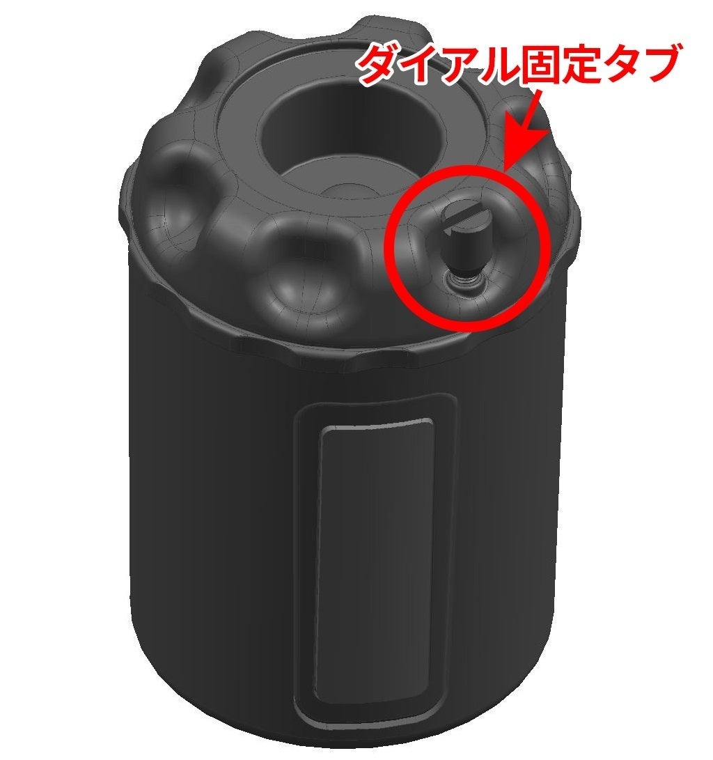 FIX BODYを固定した後、ダイアル固定タブを硬貨やマイナスドライバーで時計回りに1回転~1回転半回します。※※※それ以上回すと故障の恐れがあります※※※
