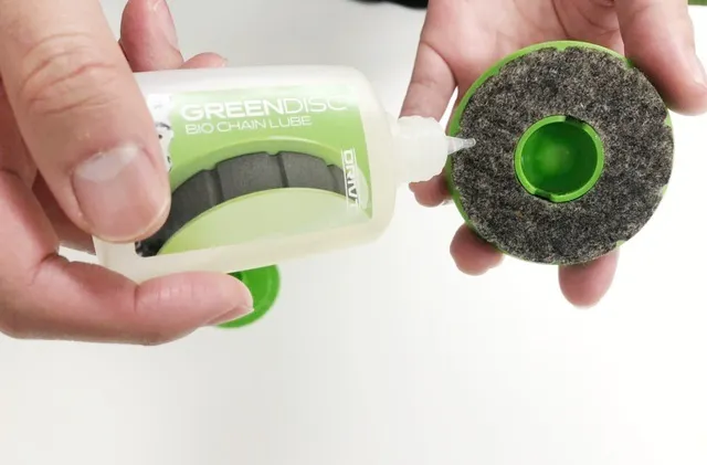 GREEN DISCはオイルをlubricator wheel(リューブリケーターホイール)に含ませ、直接チェーンに塗り込むことが出来るので、オイルを無駄にすることがありません。