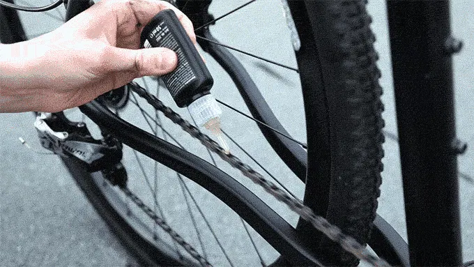 ④自転車のチェーンにlubricator wheel(リューブリケーターホイール)をあて、ペダルを回します。