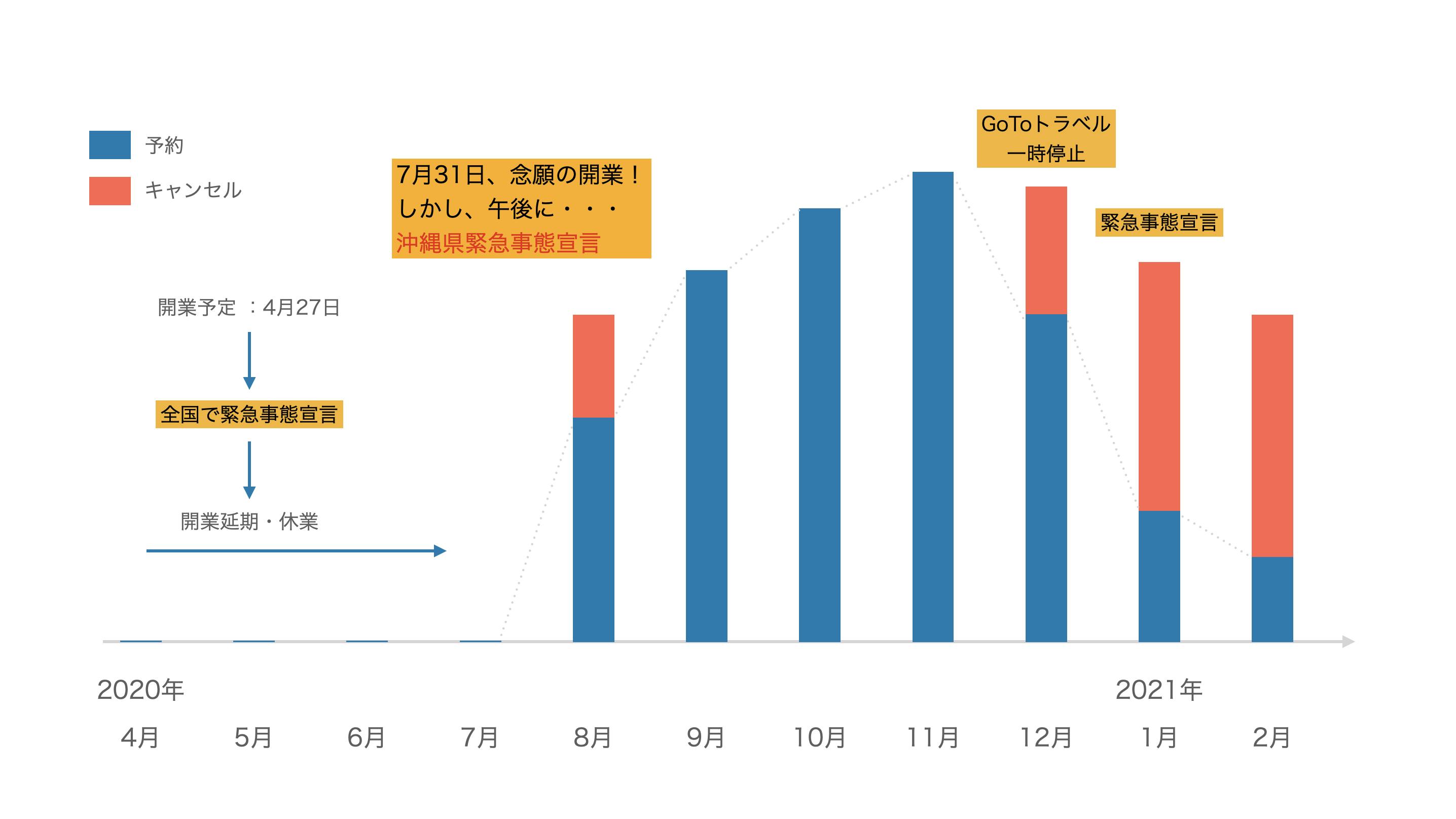 開業日当日の午後、沖縄県独自の緊急事態宣言を発令したために、