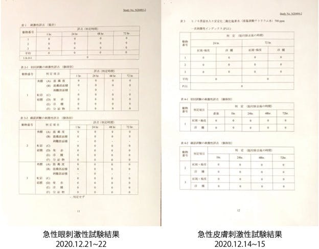 急性皮膚刺激性試験、急性眼刺激性試験にてどちらも刺激性がないことが証明されました。手指にも毎日のお掃除にも安心してお使いいただけます。