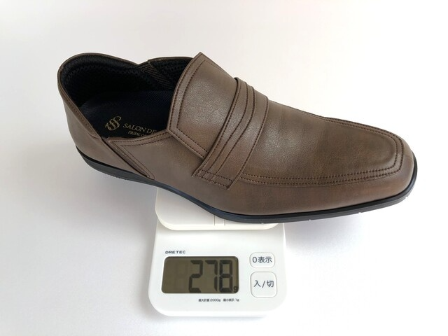 重さは片方でたったの約280g(26.0cm計測)とスニーカー並の軽さ。
