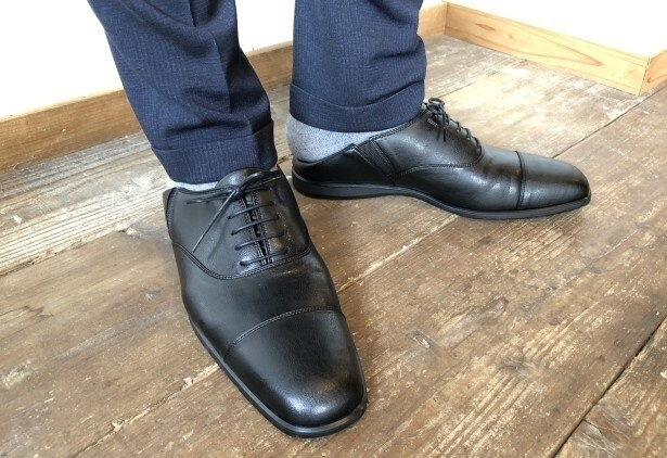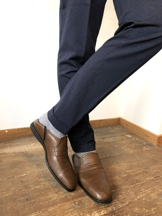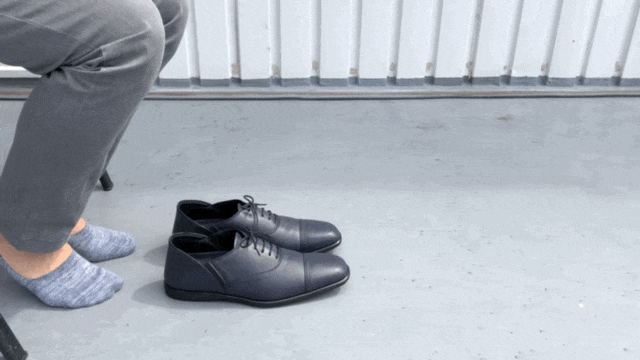 ビジネスシューズにカカトを踏んで履く「スリッパ履き機能」をプラス。