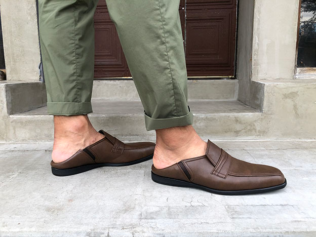 1.カカトを中に折り込んでのスリッパモード