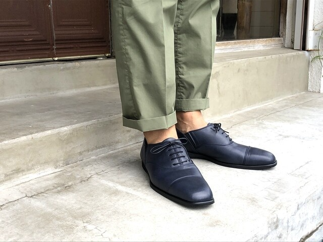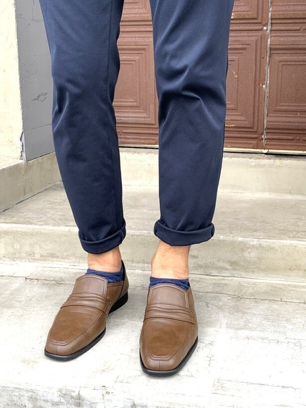オフィスカジュアルスタイルなら、柔らかいイメージで足元を演出。
