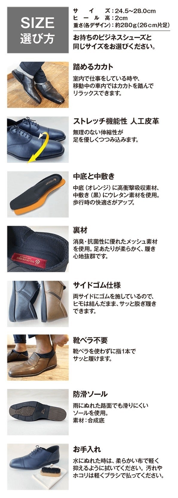訪問先での脱ぎ履きに時間を掛けることなく、スマートさをアピール。