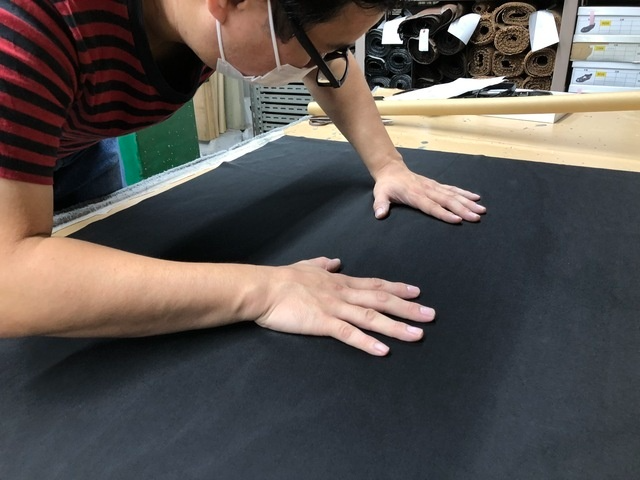 使用する素材の状態を厳しくチェック。特に天然素材の革などを使用する際は、一枚一枚状態が違います。加工に移る前にすべて職人が目で見て、手で触って確認しています。