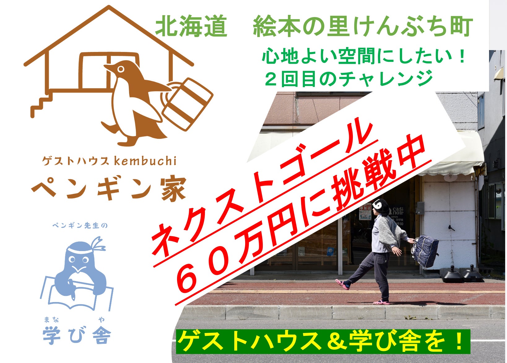 昨年7月から8月に「絵本の里にペンギンゲストハウス&地元の子ども向け学び舎を!」とプロジェクトを立ち上げました。104名から112万円の温かいご支援をいただき、終了することができました。
