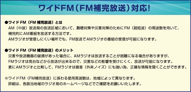 ・バンド:AM/FM (FMステレオ) ※ワイドFM対応