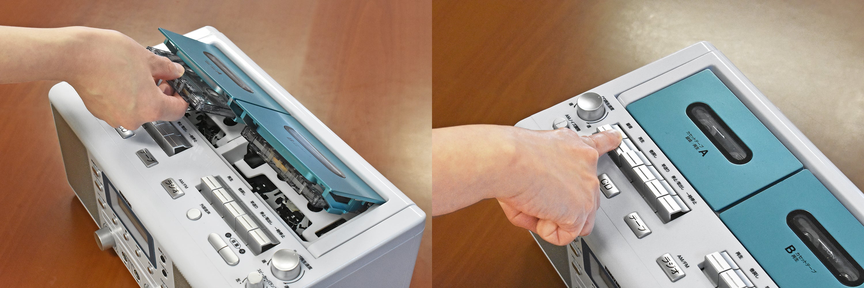 「カラオケCDダブルラジカセ【WUTA(ウータ)】」は今でもカセットテープを愛用されている方に喜んでいただけるように、2つのカセットデッキを搭載しています。