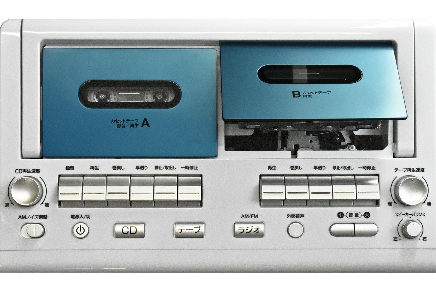 カセットデッキが2つあるラジカセ。昔は当たり前でしたが、音楽の楽しみ方が多様化する現在ではほとんど見かけなくなりました。