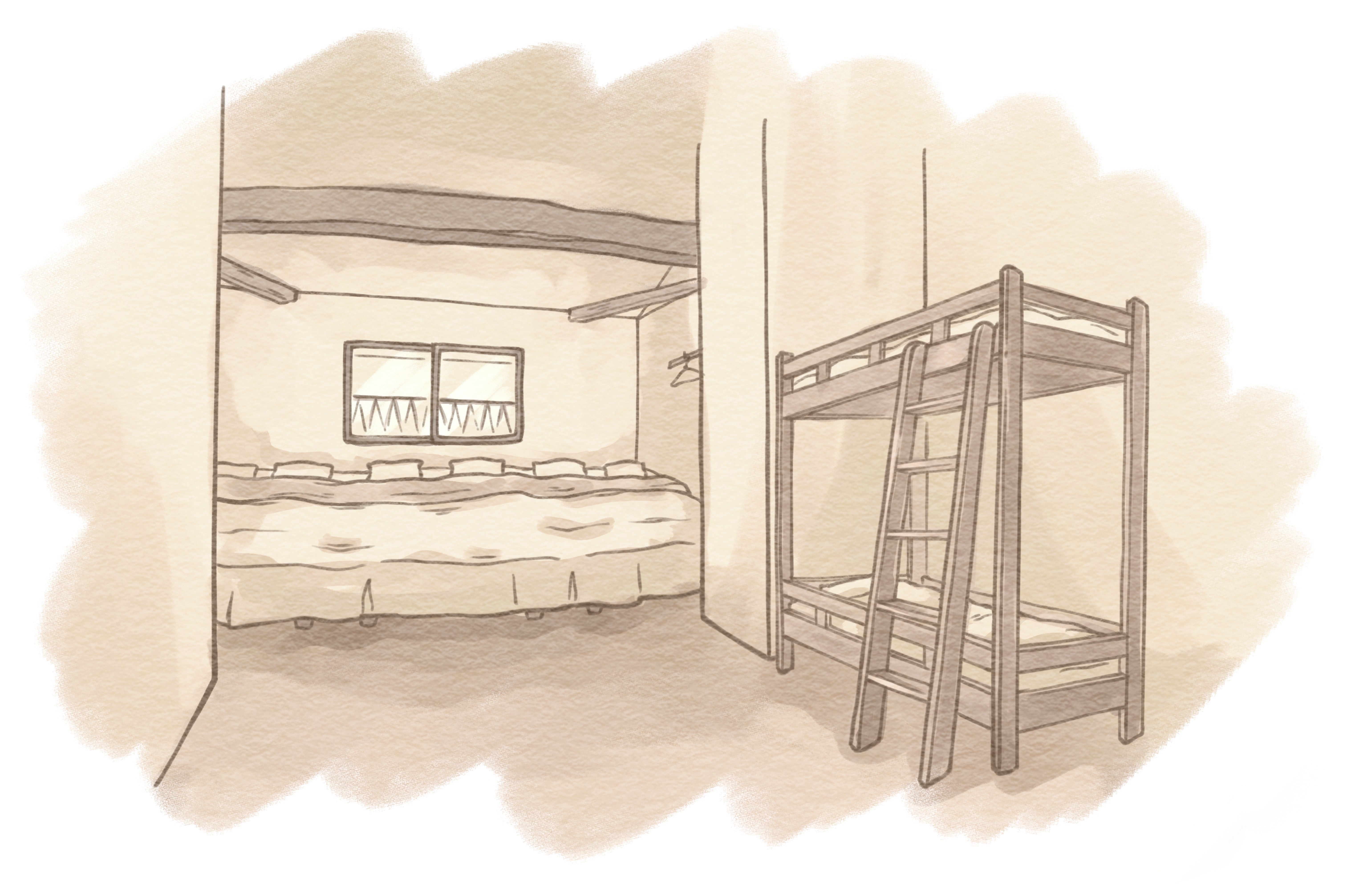 2階は貸し切り限定の宿泊所。最大5人で寝泊まりが出来て部屋にはダブルベッドを3つ繋ぎ合わせた特大ベッドと二段ベッドやビールサーバーを設置予定。家族や友達、カップルで来ても楽しいのは確定。