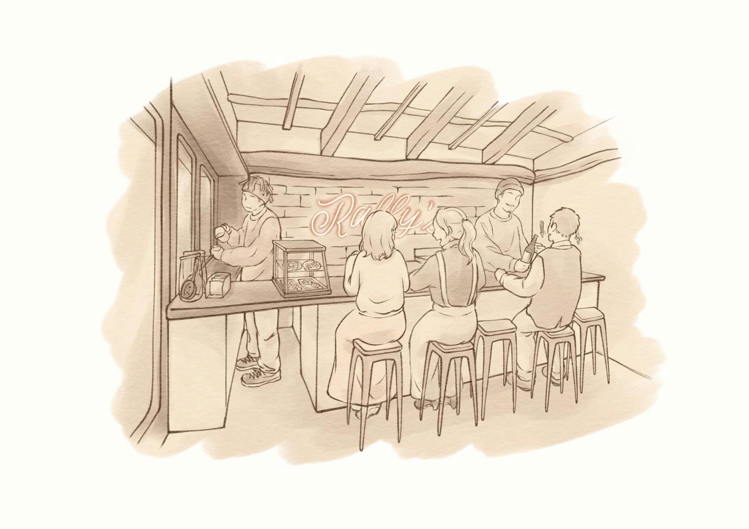→開店前のRally'sの見学と、コーヒーとクラフトコーヒービールが飲めます。予約は必要ありません。どなたでもふらっとお越しください。