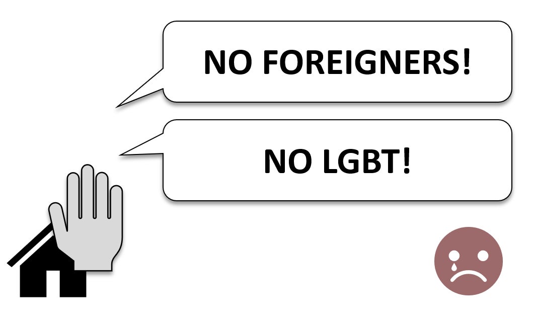 一般的に、外国人や性的少数者等が住宅を探す際、受け入れてもらえる物件の数が著しく減るとされています。実際、法務省が2017年に行った調査によると、日本に住む外国人の約4割が外国籍であることを理由に入居を断られた経験があるということです。弊社代表がかつて住んでいた国際学生寮でも、卒寮した留学生が物件探しに苦労する声をたくさん聞いていました。