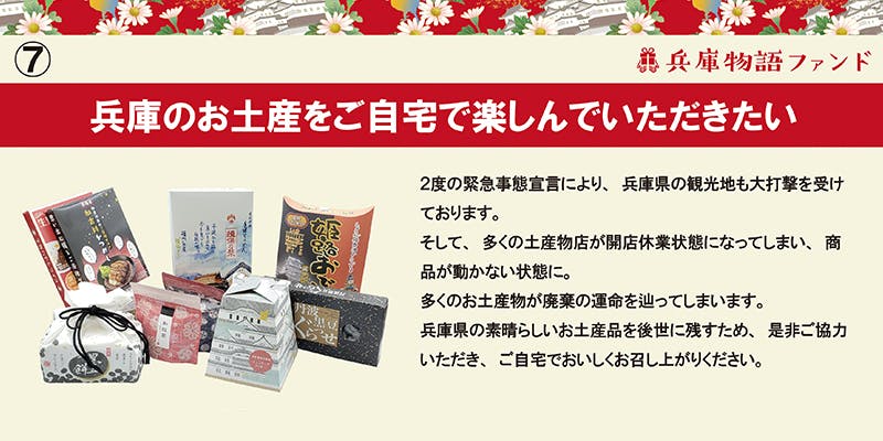 ⑦兵庫土産をご自宅で楽しんでいただきたい