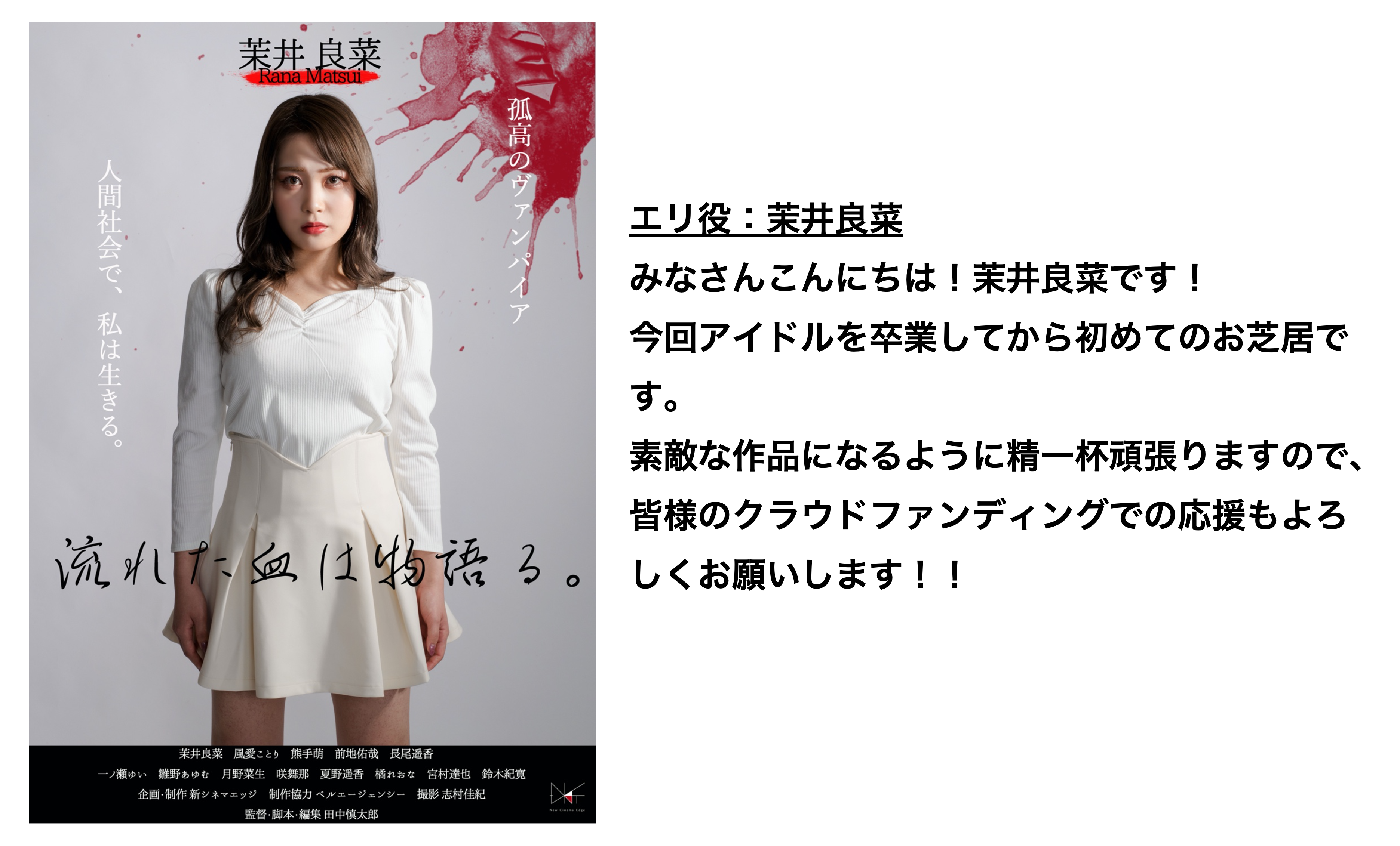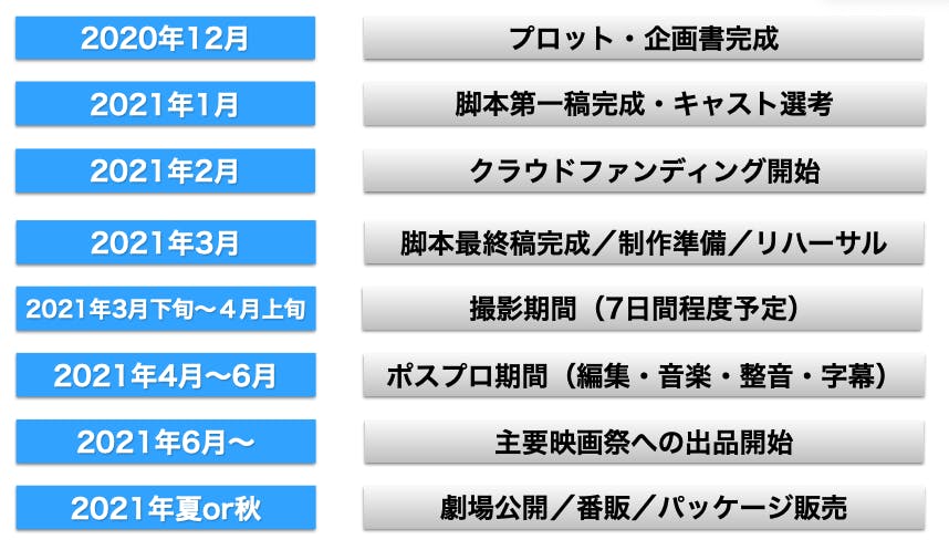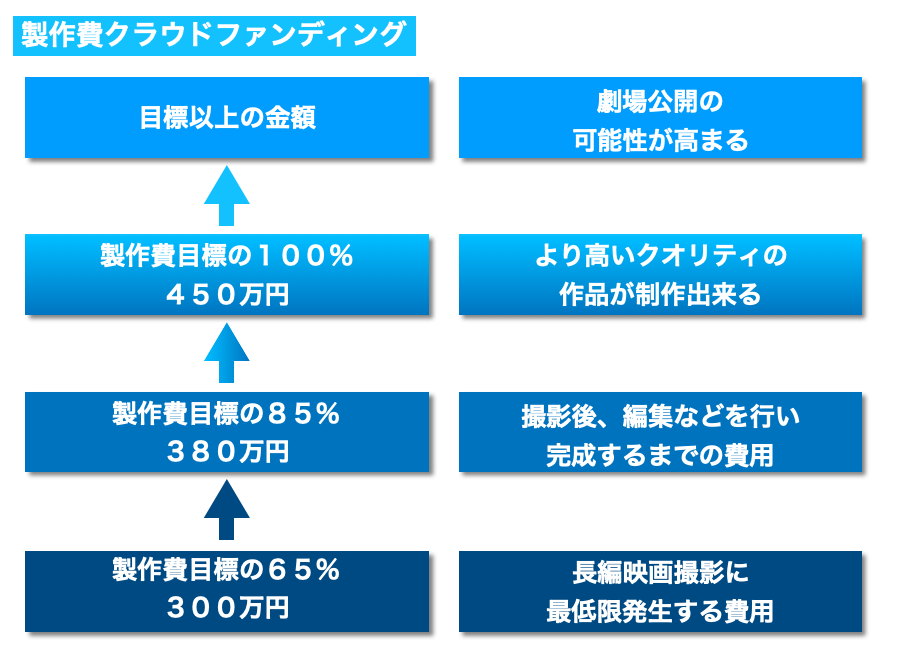 そのような実状に抗い、目標とする劇場公開や国内外の映画祭受賞を実現させ、スタッフ・キャスト・応援していただく皆様全員が満足できる結果を目指します。そして世界中の映画ファンから一人でも多く認知してもらえるよう努めます。