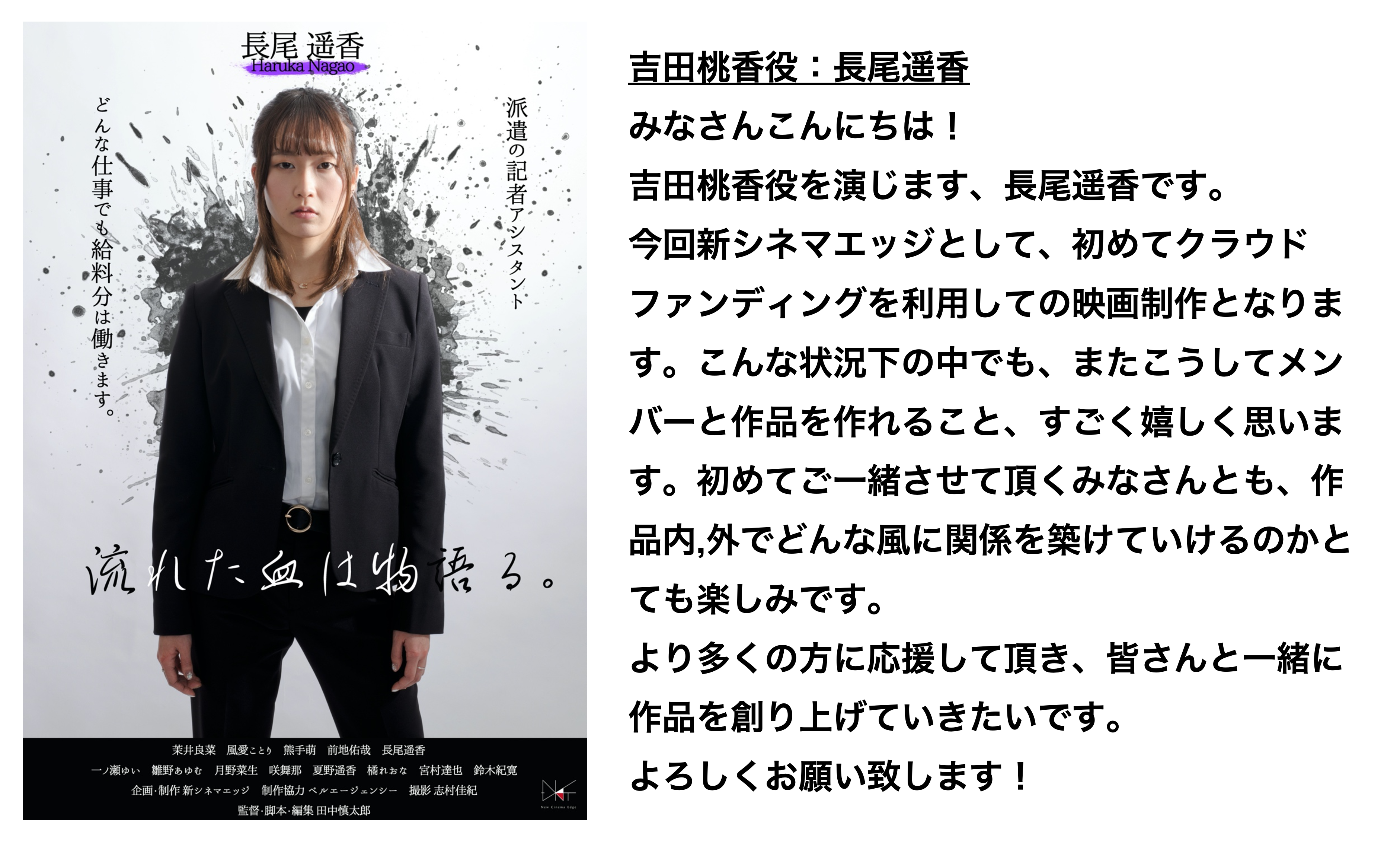 新シネマエッジ立ち上げ当初に長編映画の制作を企画しましたが、新型コロナウイルス影響により断念しました。それから約1年間、少数精鋭で主に短編作品の制作に明け暮れました。YouTubeを中心に作品を公開して来ましたが、どうしても我々の作品を劇場で見ていただきたいと思い、今回のプロジェクトを立ち上げました。我々だけでは成す術が無いですが、皆様の応援により実現できます。