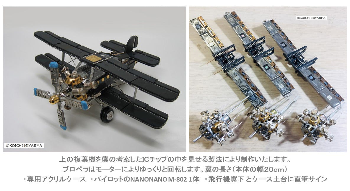 ⑧350000円 ICチップで製作した複葉機、専用アクリルケース、