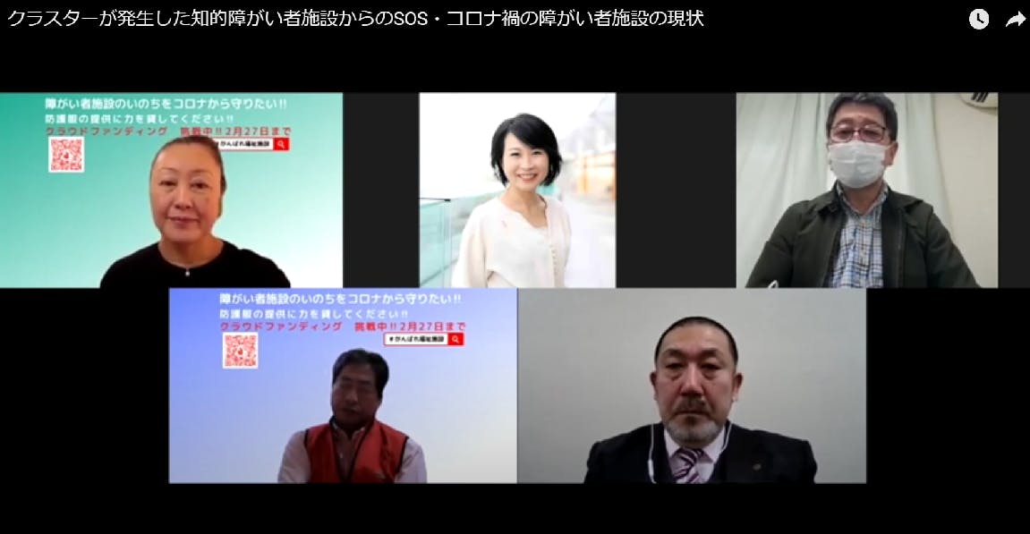 2021/02/26 16:31「クラスターが発生した知的障がい者施設からのSOS・コロナ禍の障がい者施設の現状」ということで動画をアップ致しました。「障がい者施設で起きていること」を知って頂ければと思います。 もっと見る