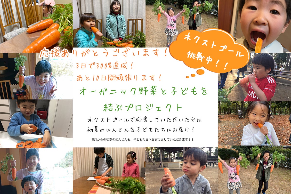 「初夏のにんじんと旬のオーガニック野菜を、6月から8月まで子供たちにお送りする!」です。
