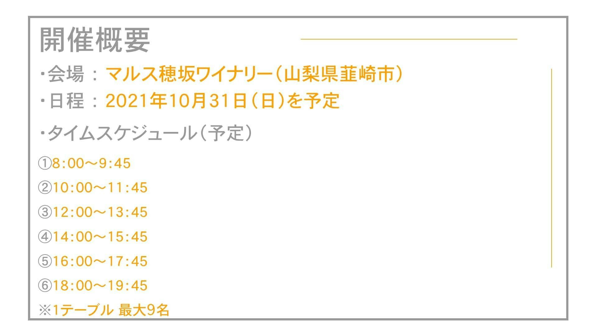 具体的な内容として今回は、山梨県にあるマルス穂坂ワイナリー様にご協力いただき素晴らしい場所、景色をお貸しいただいたので、そこにテントサウナを用意しサウナイベントを開催したいと考えています。