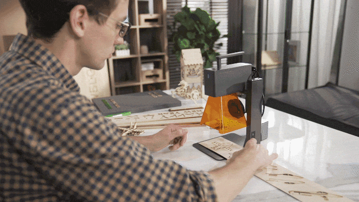 LaserPecker 2は、強力な機能が追加され、インターフェイスがより使いやすくなり、初心者、愛好家、専門家を問わず、レーザー彫刻を手頃な価格でお求めいただけるようになりました。デザインもシンプルで洗練されており、端子を接続するとすぐに起動、スマートフォンと連携し、数回クリックするだけで彫刻を開始できます。