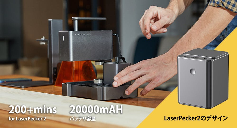 LaserPecker 2には、専用のパワーバンクもあるので長時間使用できます。最大200分動作するため、いつでもどこでも手軽に彫刻できます。