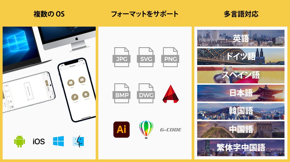 LaserPecker 2は、複数のプラットフォームをサポートしているため、モバイルとデスクトップの両方で使用できます。また、フォーマットも同様に複数のものをサポートしているため、よりスムーズな作業が可能です。