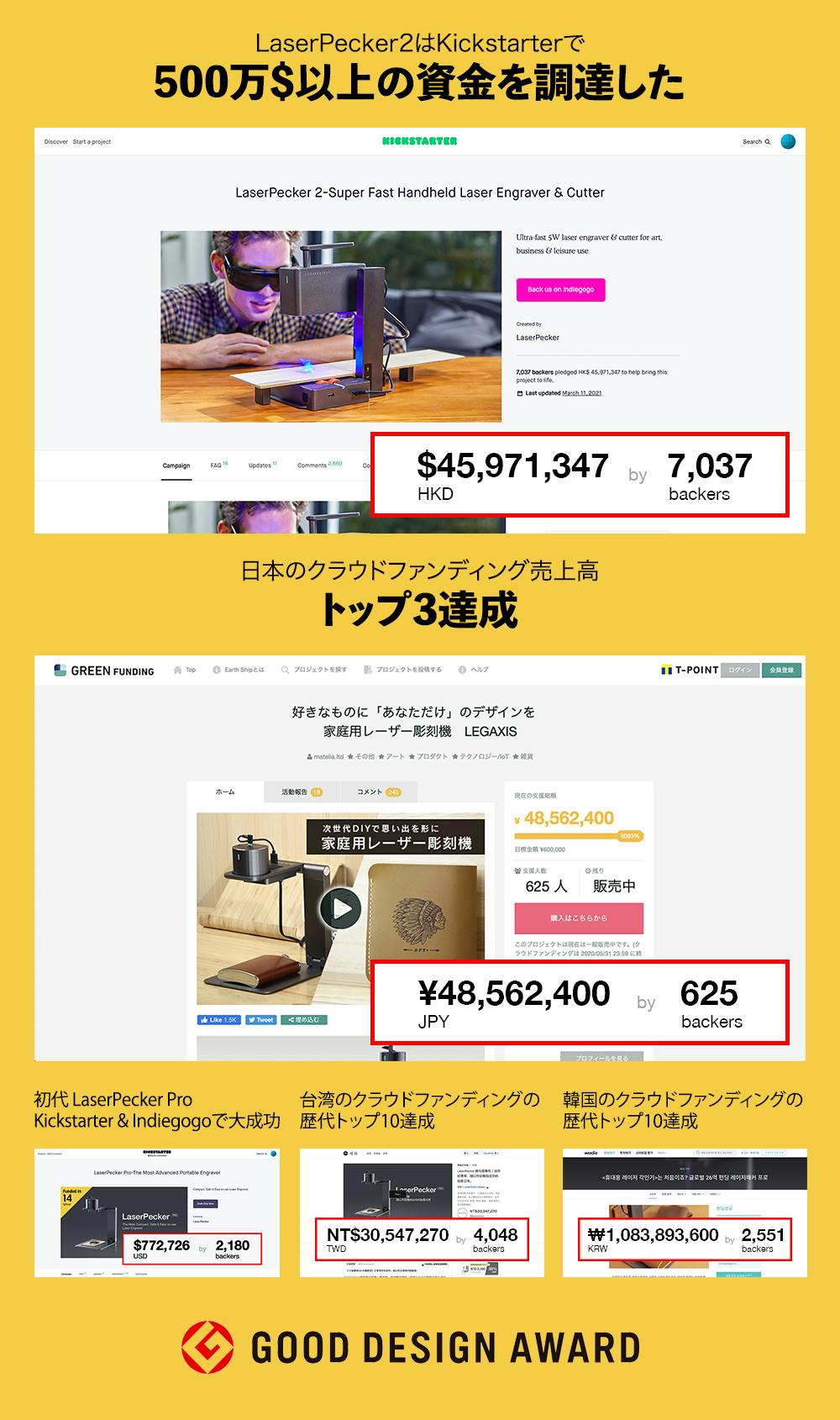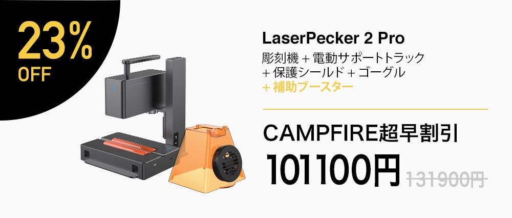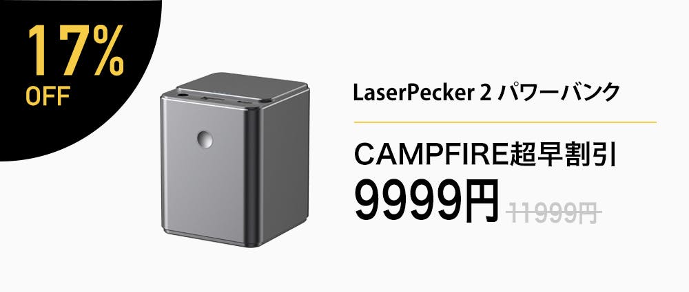 2023/05/24 18:01LaserPeckerファンの皆様へ、皆様のご支援により、過去3回のキャンペーンはクラウドファンディングを成功させ、大変ご好評をいただきました。今回のCAMPFIREでのLaserPecker4のキャンペーンも8000万円を達成し、世界一の支援額のレーザー彫刻機であることを示すことができました。それも、皆様のお力添えのおかげです。ありがとうございます。皆様からのご期待を受けて、この度CAMPFIREでの先行予約を延長することになりました。前回のキャンペーンに参加できなかった方でも、LaserPecker 4が欲しいという方は、このプロジェクトでお得に支援するチャンスがあります。新しいキャンペーンページhttps://camp-fire.jp/projects/view/672153LaserPecker 4を気に入っていただけた場合は、ぜひご家族やご友人にもご紹介ください。また、LaserPecker 4について何かご質問があれば、お気軽にお問い合わせください。ずっと応援してくれてありがとうございます!レーザーペッカーチーム もっと見る大人気7300万円越えLaserpecker4キャンペーンは本日まで!