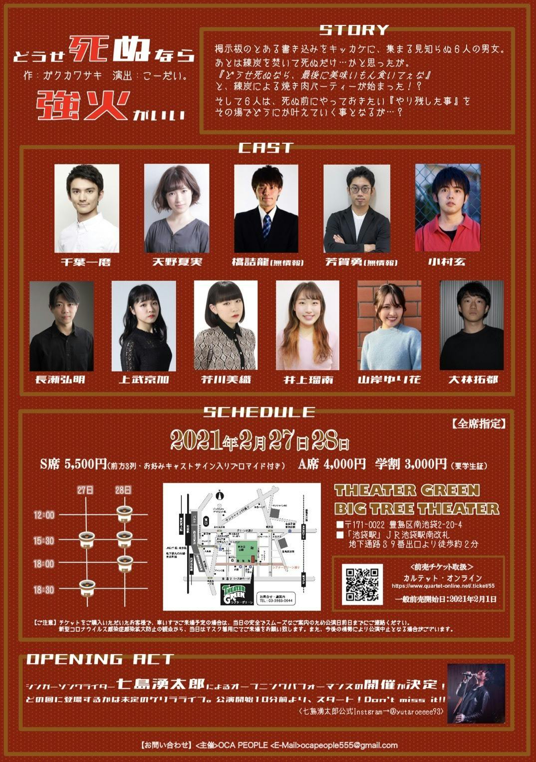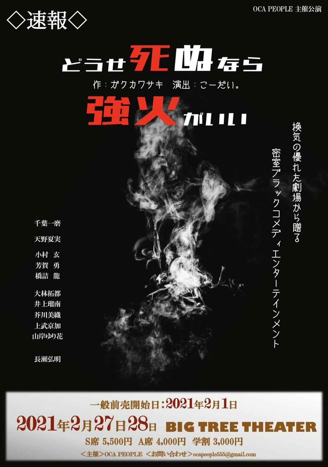 企画プロデュース・演出 こーだい。協力のもと、若手クリエイターやプロの役者に集まっていただき、「コロナ禍だからできること」をテーマに掲げ、舞台「どうせ死ぬなら強火がいい」を上演します。