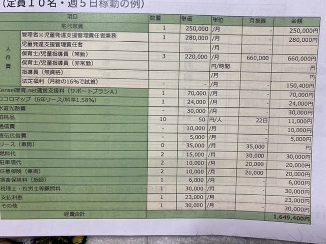 ※開所し、売上が国保連から支払われるのが2ヶ月後なので2ヶ月間は、売り上げはありません。
