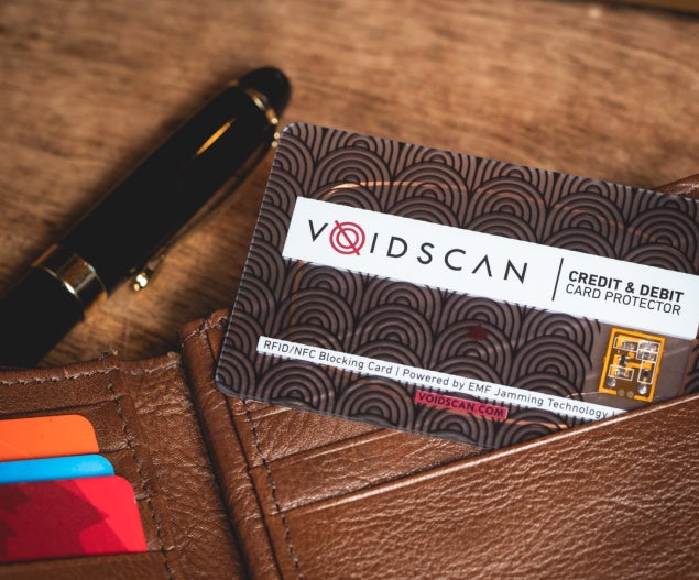 スキミング防止専用の財布やカードケースとは異なり、VoidScanはお手持ちの財布に入れるだけで機能します。これは、最もシンプルで手頃なスキミング防止策です。