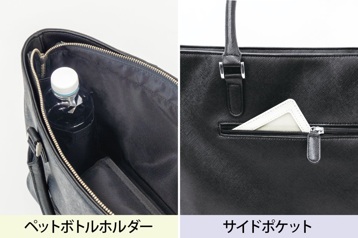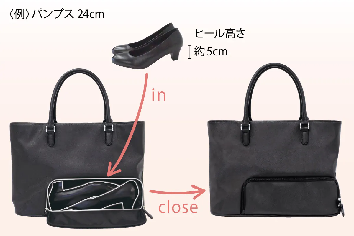 『パンプスinバッグ』最大の特徴は、側面から簡単に出し入れできるシューズポケット。