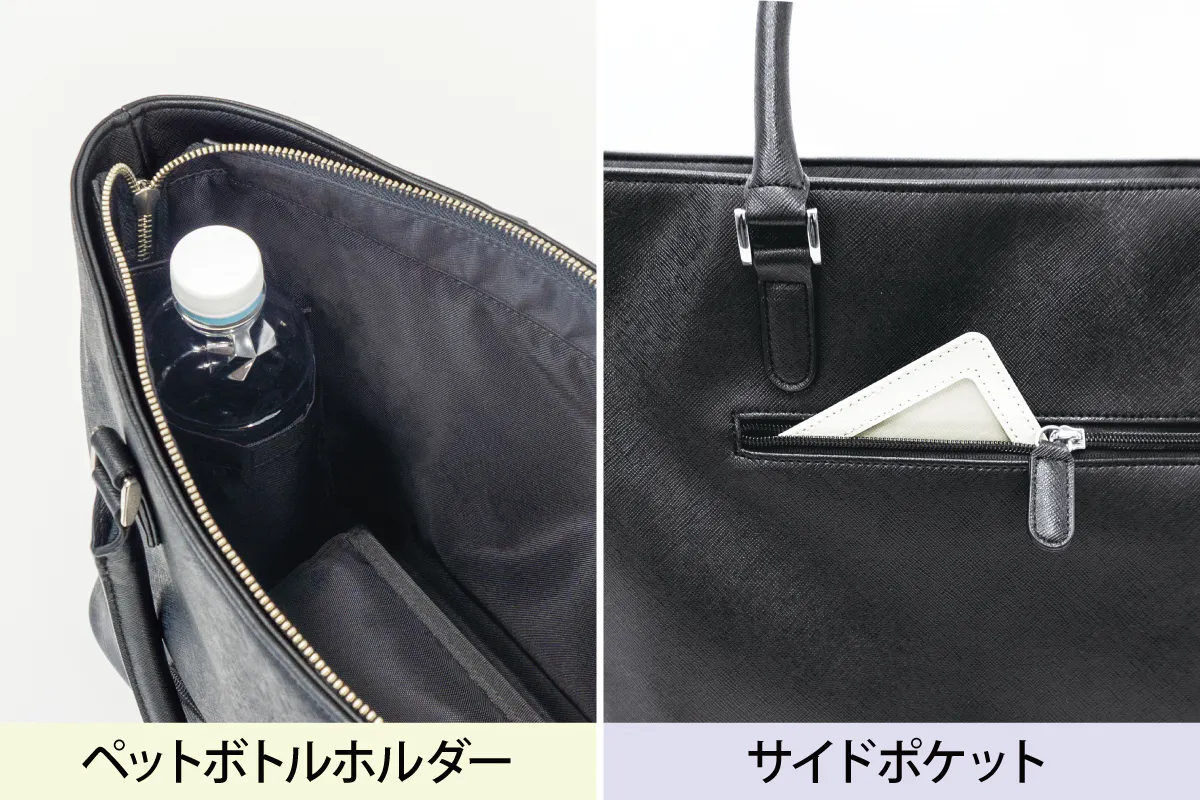 スマホやICカードなど、すぐ使いたいものがサッと取り出せるサイドポケットも付いています。