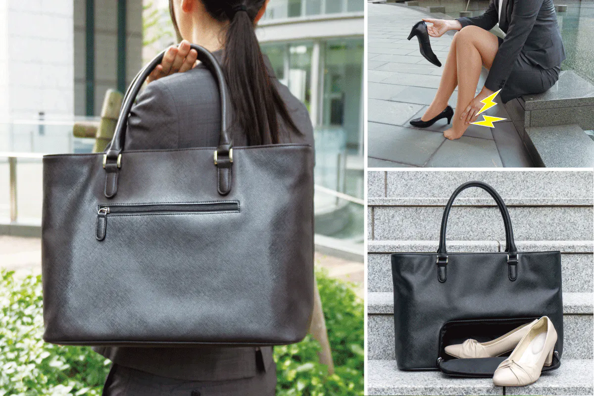 就活、通勤、外回りのお仕事で大活躍!足の疲れや靴擦れでお悩みの女性のために、ありそうでなかった新しいバッグが誕生しました。
