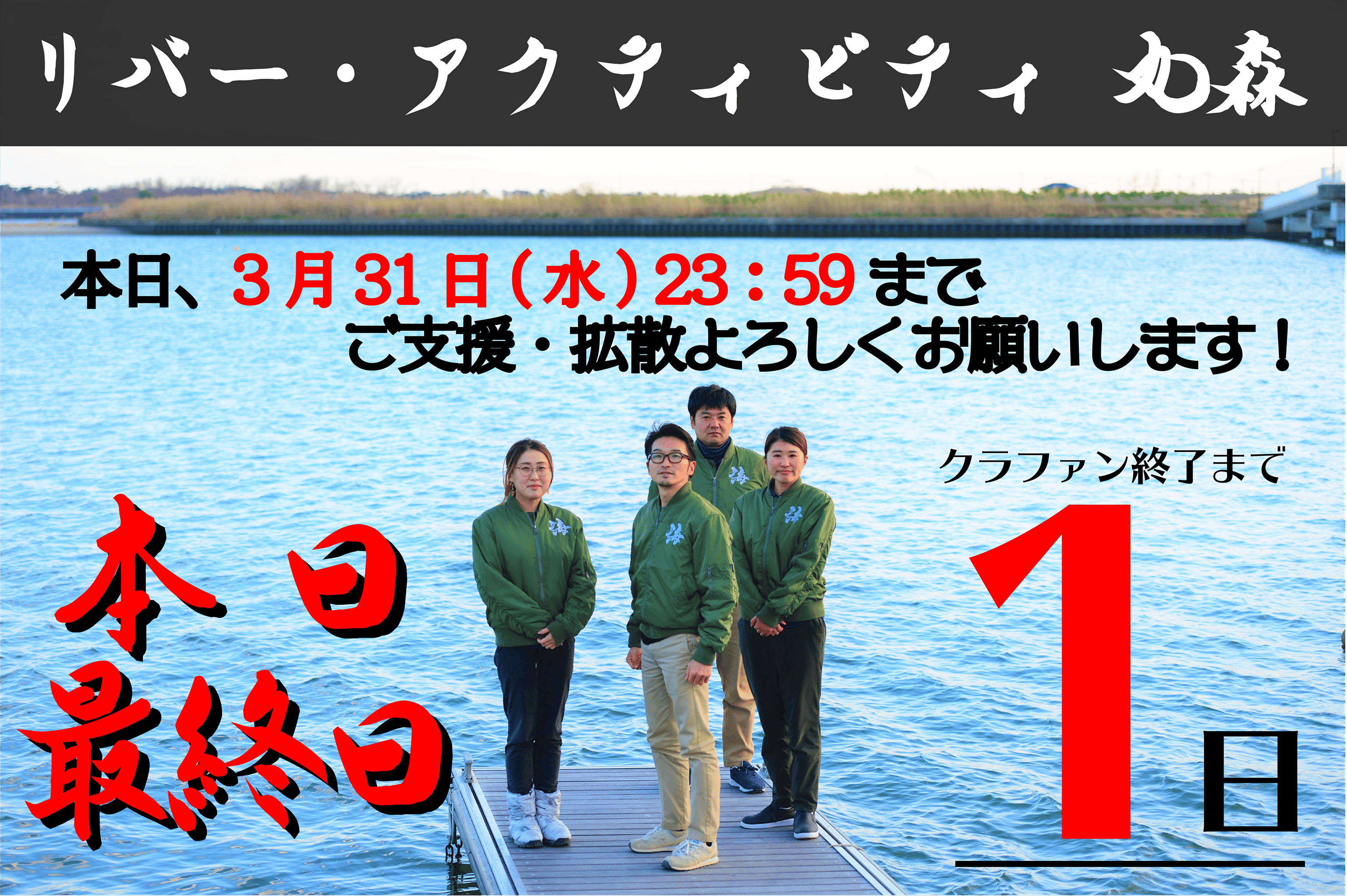 2021/03/31 10:50★ とうとう本日最終日!!長きに渡り掲載してきた「リバー・アクティビティ 丸森」もついに今日が最終日となりました。今まで多くの方に閲覧頂き日本全国の方に宮城県丸森町のことを知って頂きました。広い日本の中にこんな場所があるんだ!ということだけでも伝われば最高です!でも、「もっと最高」なことはこの「宮城県丸森町を流れる阿武隈川」が「たくさんの笑顔」で溢れることです。当プロジェクト「リバー・アクティビティ 丸森」を通してこの「もっと最高」なことが実現できたら「とんでもなく最高!!」になるはずです!!最後のお願いです!「リバー・アクティビティ 丸森」にご支援ご協力をよろしくお願いいたします!スタッフ一同、皆様と現地でお会いできることを楽しみにしてます!!*クーポン使えます→ クーポンの使い方 もっと見る