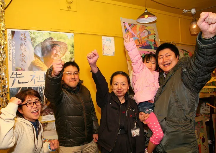 2014年4月16日、映画上映会のあと、池谷監督、直志さん、剛さんを囲んで、打ち上げを。