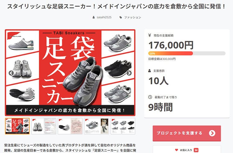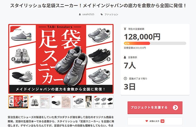 たくさんあるプロジェクトの中から足袋スニーカーのプロジェクトを見て頂き、