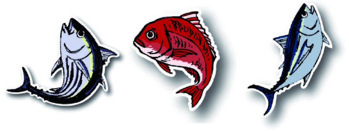 ③引いたカードはすぐに表にして場に出し、その魚の頭が付いた刺身をみんなで一斉に釣り競争します。
