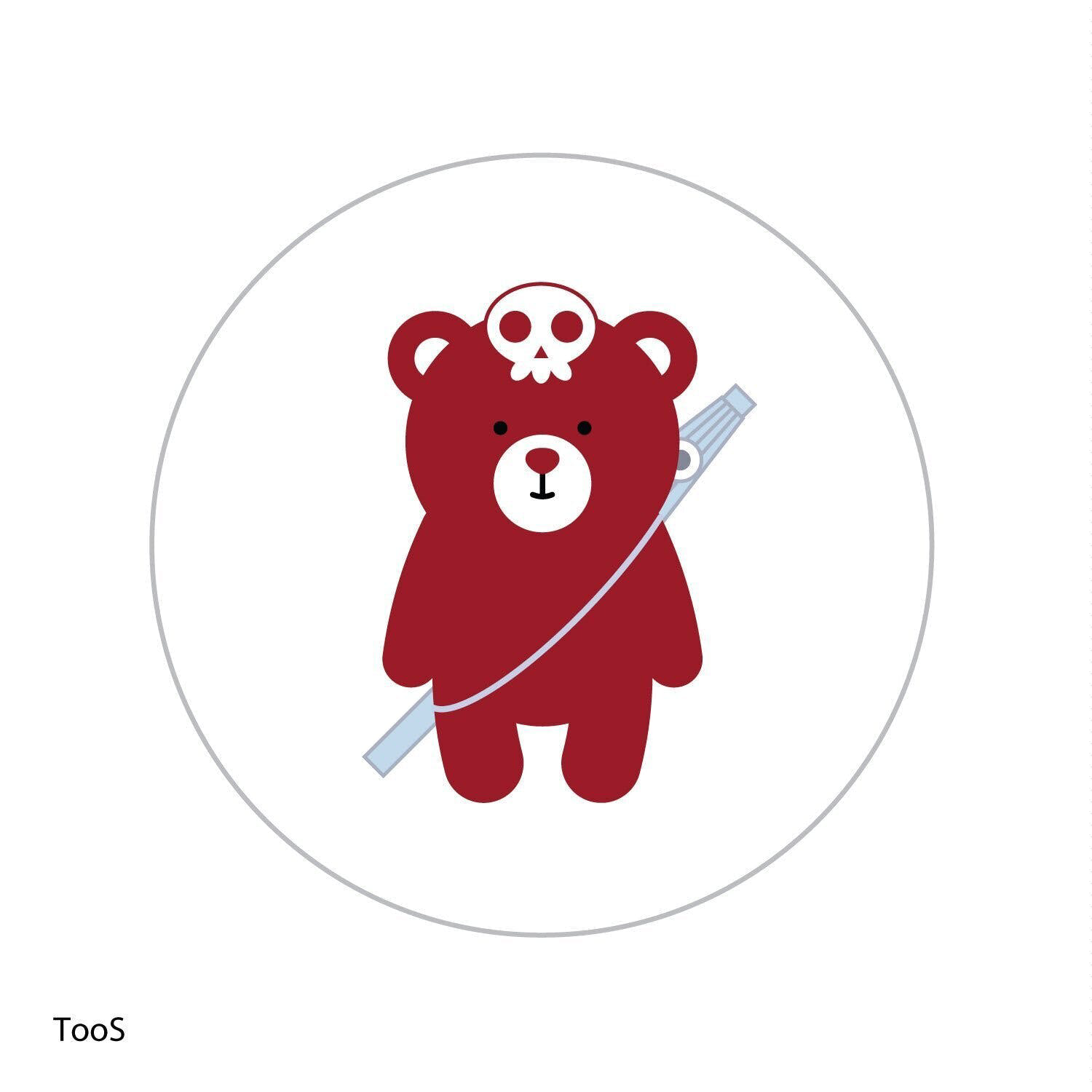 アイコンにしているくまさんの缶バッチです。Tono&Limsに制作していただいたGlass Studio TooSをイメージしてできた“とぅーすくまさん”です。Tono&Limsコラボインクのデザインからドクロの仮面と唐傘のガラスペンを背負っています。