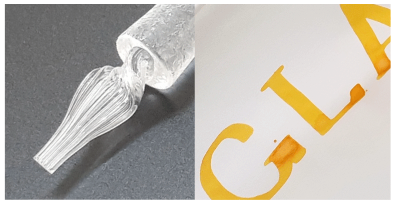 通常のガラスペン先とは違い薄い長方形の形をしたカリグラフィーの様な線が描けるニブ。