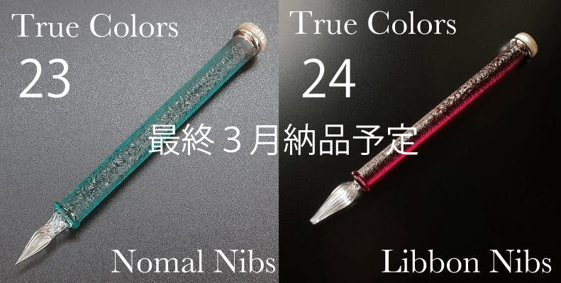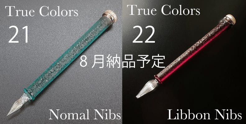 新作になるTrue colorsシリーズを、通常ニブの21 とリボンニブの22 どちらも選んでいただける様にしています。