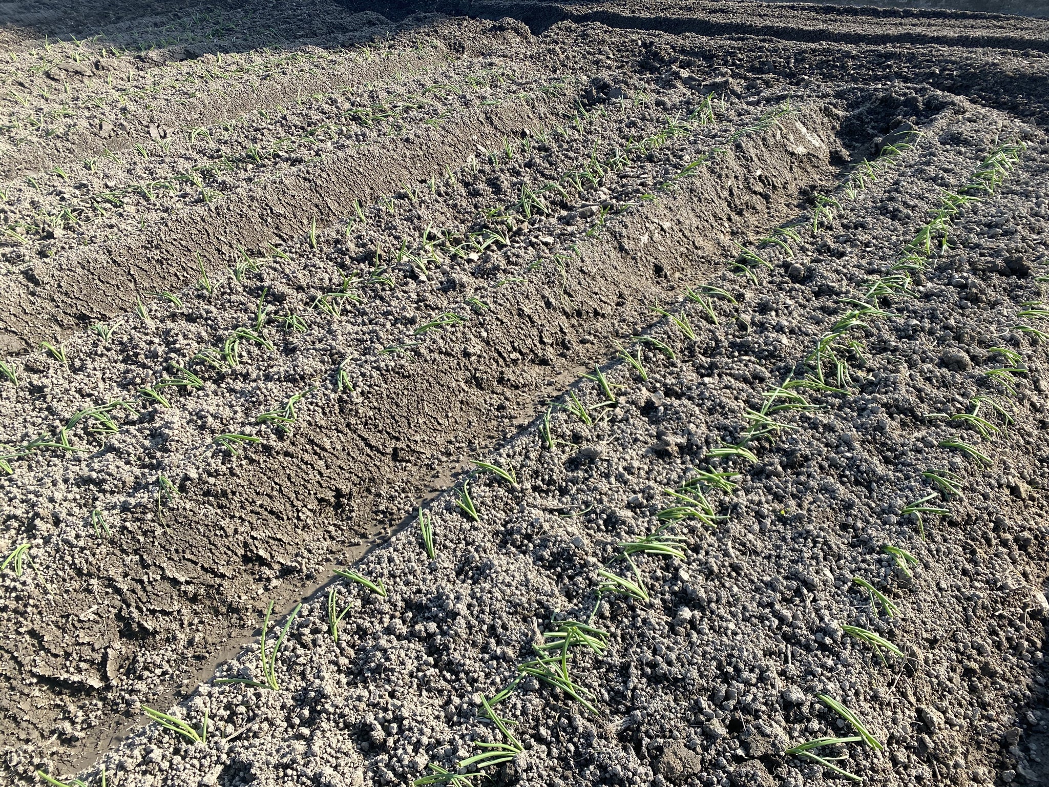 ある程度間隔を空けているのは、玉ねぎか大きくなった時に、玉ねぎ同士が当たらないようにする為です!