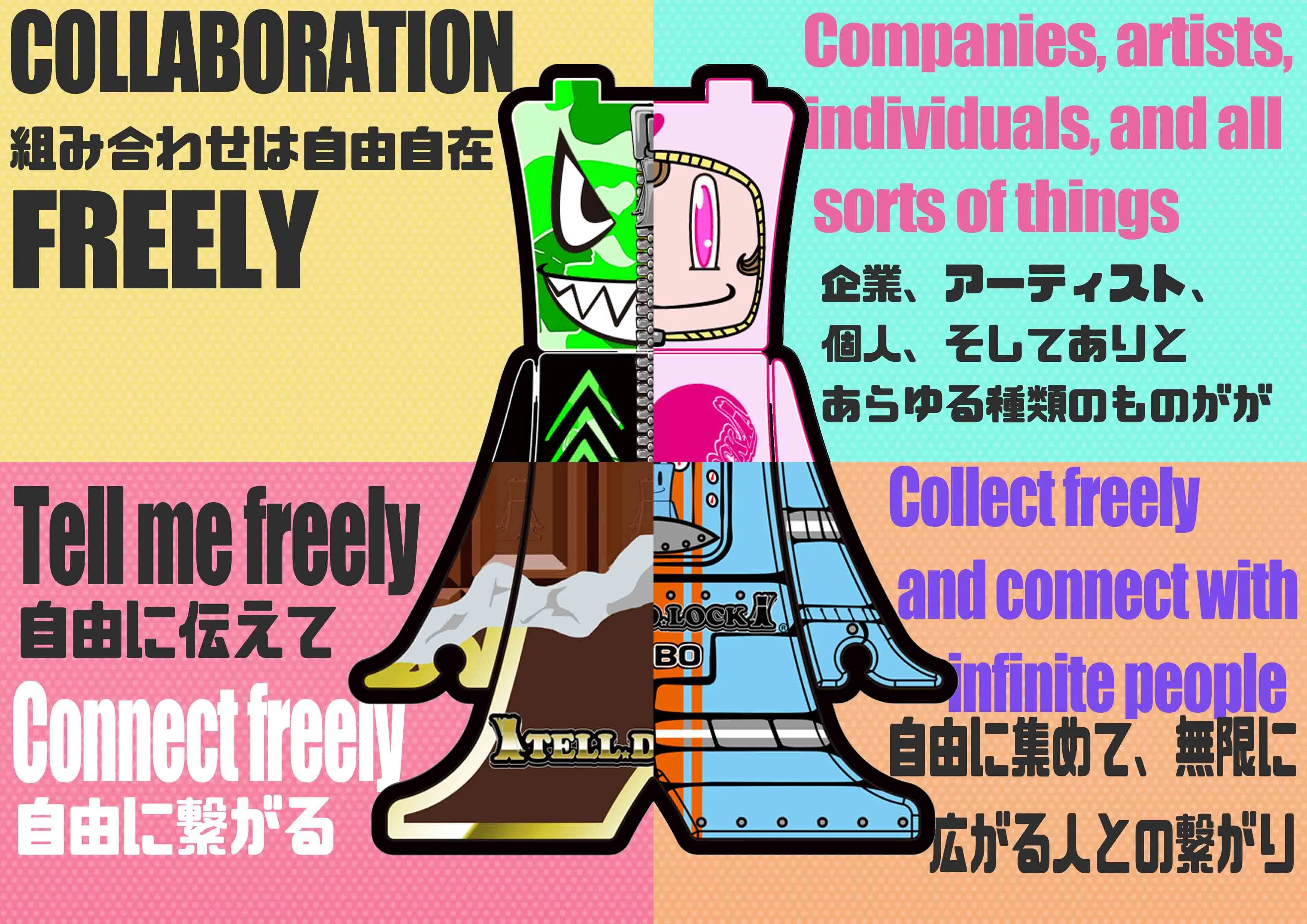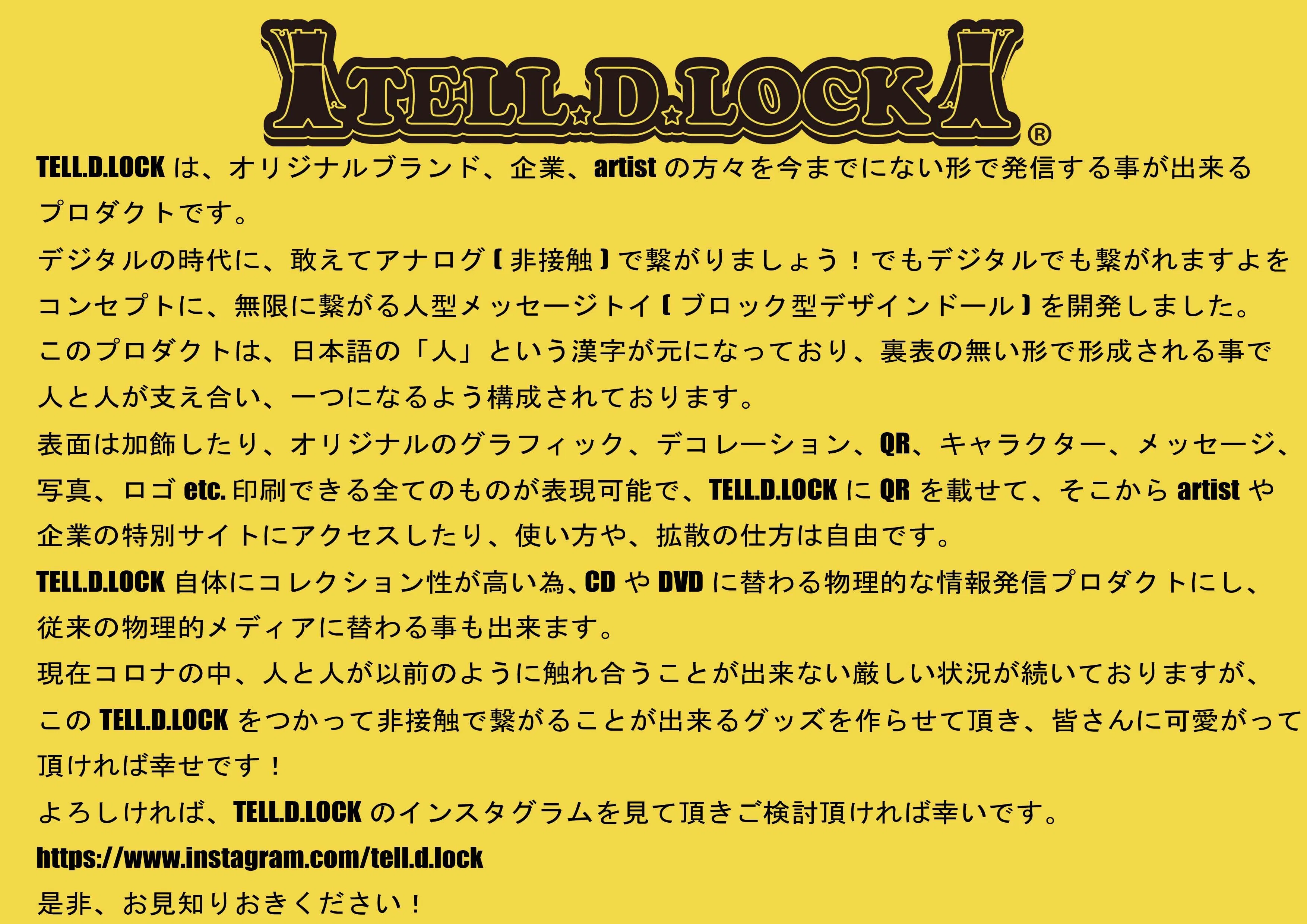 個人がインターネットを通じて多くの人が簡単に繋がる時代にあえてアナログでも繋がれるおもちゃがあると面白いのに…個人が企業と、ブランドと、コレクションしながら小さなコラボレーションを増殖させれば、TELL.D.LOCK を通じて一つの大きな集合体ができるのではないだろうか。