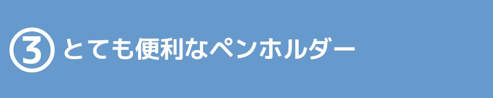 収納できるペンサイズは直径0.9㎝から直径1.8㎝と幅広く、1つ目はお気に入りのペンを、2つ目は色違いのペンを収納したり、ペンタイプのハサミや消しゴムを収納したりと、あなたの相棒として色んな場面で大活躍するはずです。