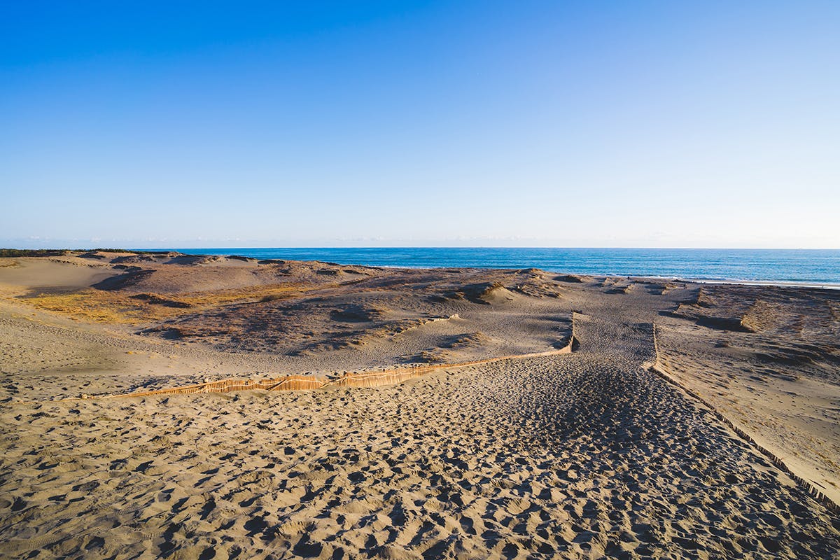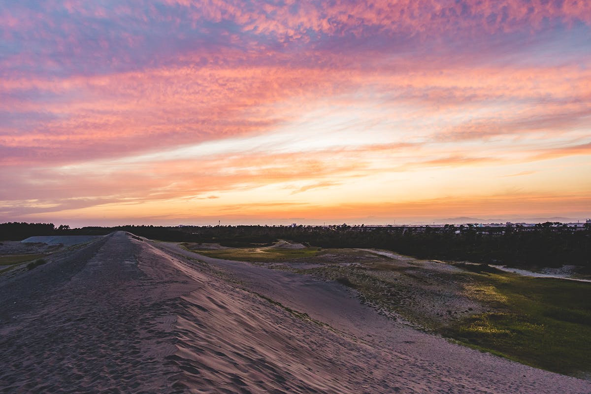 日本三大砂丘の1つとして知られる静岡県浜松市にある中田島砂丘。美しい砂の風紋や太平洋と夕日が見れる観光スポットとして毎年たくさんの観光客が訪れる場所です。そして津波や高潮から街を守るだけでなくウミガメの貴重な産卵地にもなっています。
